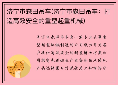 济宁市森田吊车(济宁市森田吊车:打造高效安全的重型起重机械)